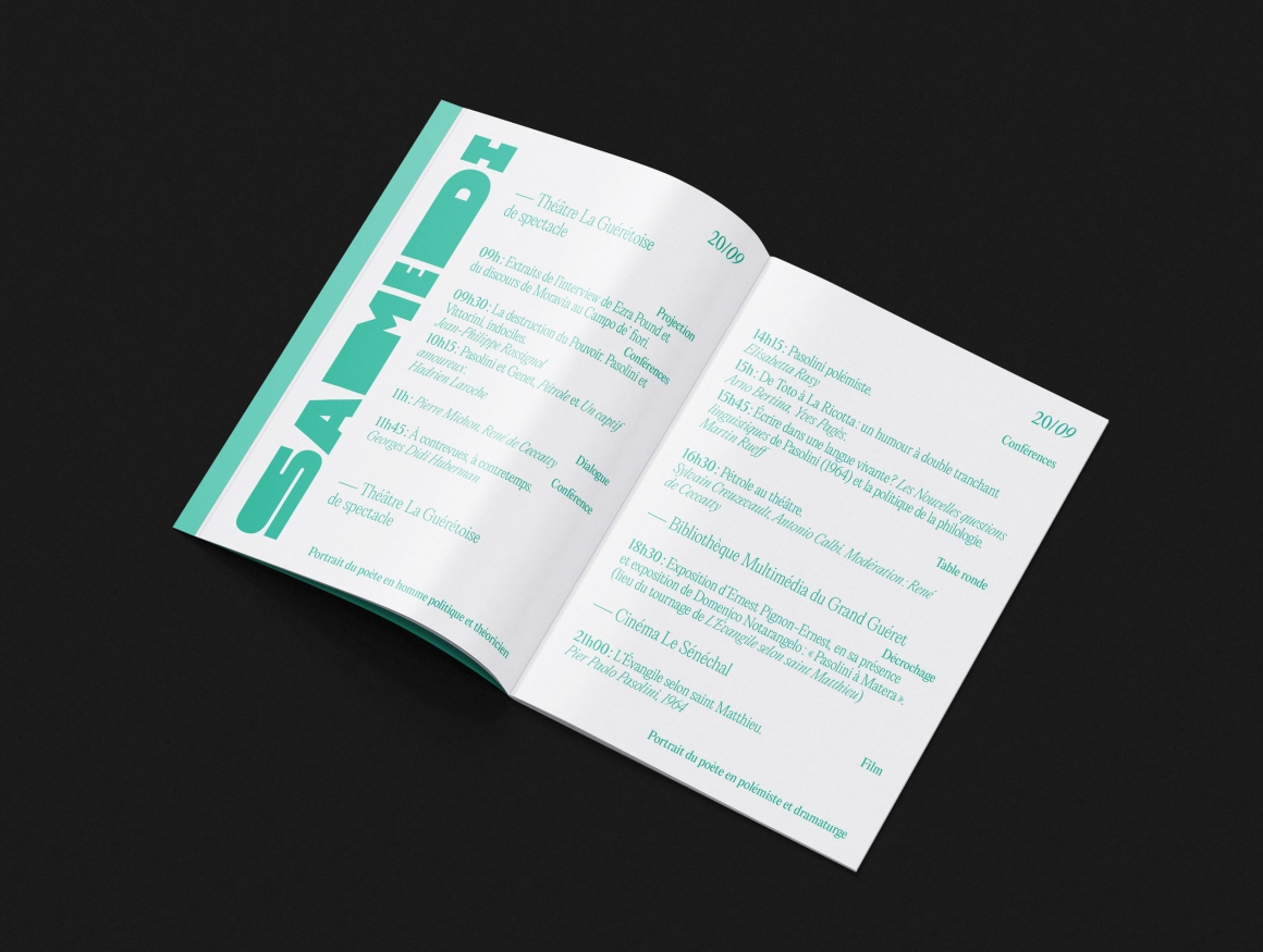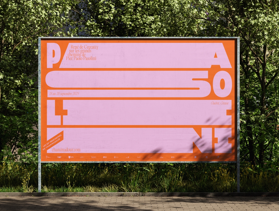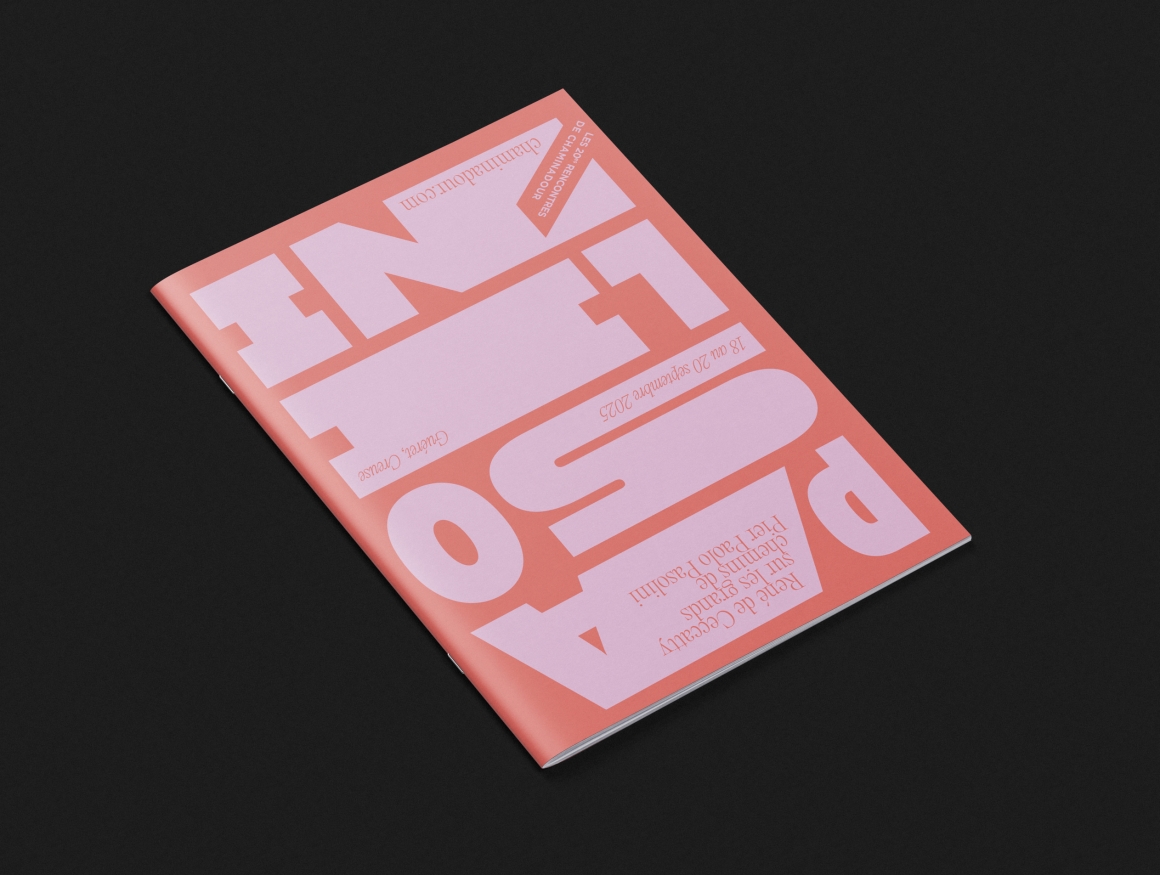 L’édition 2025 des Rencontres rend hommage à Pier Paolo Pasolini, qui fut à la fois écrivain, cinéaste, poète, peintre, journaliste. En investissant tous les champs de l’art et de la pensée avec la même force il a imprimé de façon unique sa vision du monde et des ses contemporains. J’ai donc dessiné une typographie bold qui exploite et emplit tout l’espace des supports de communication.