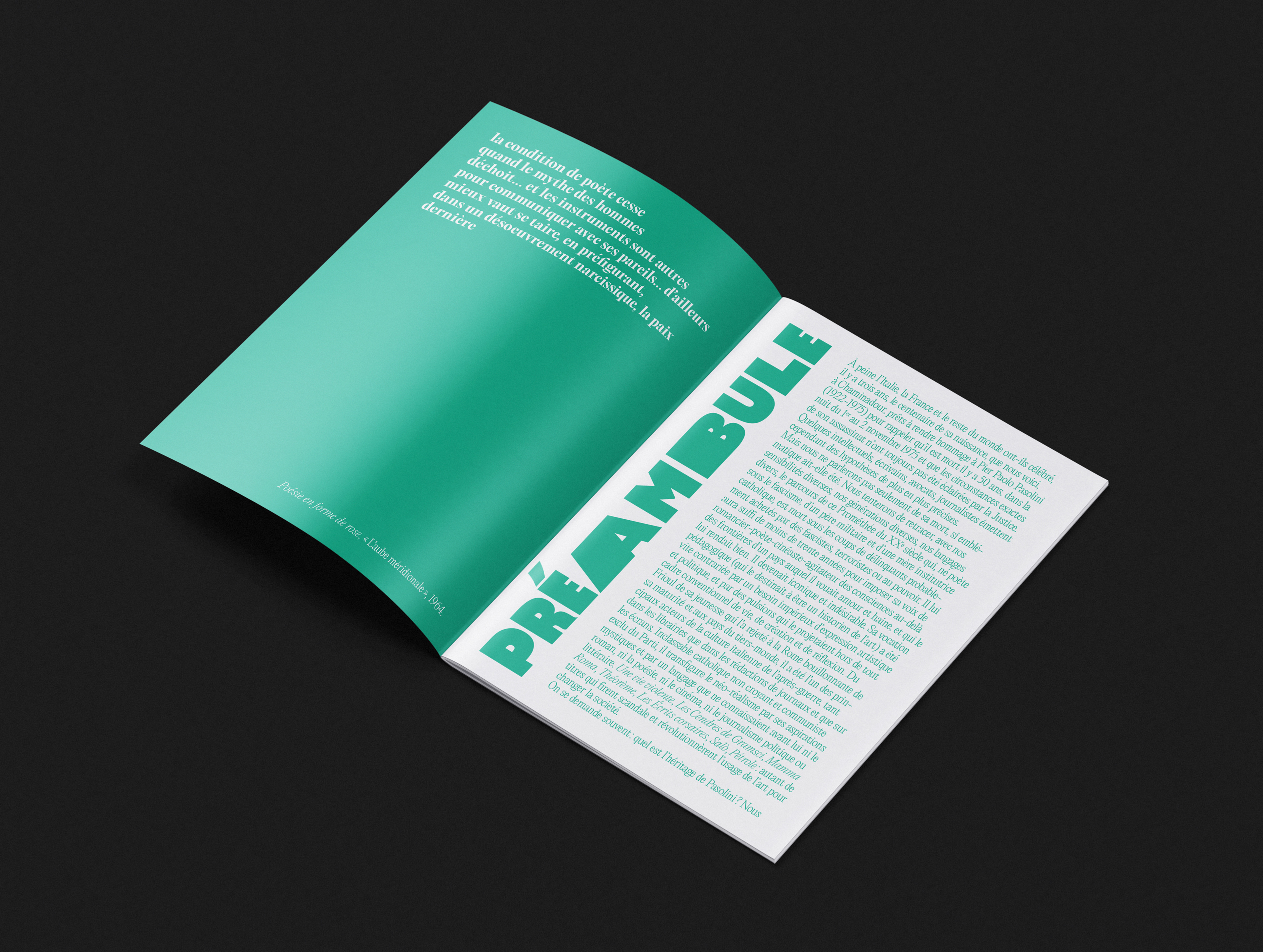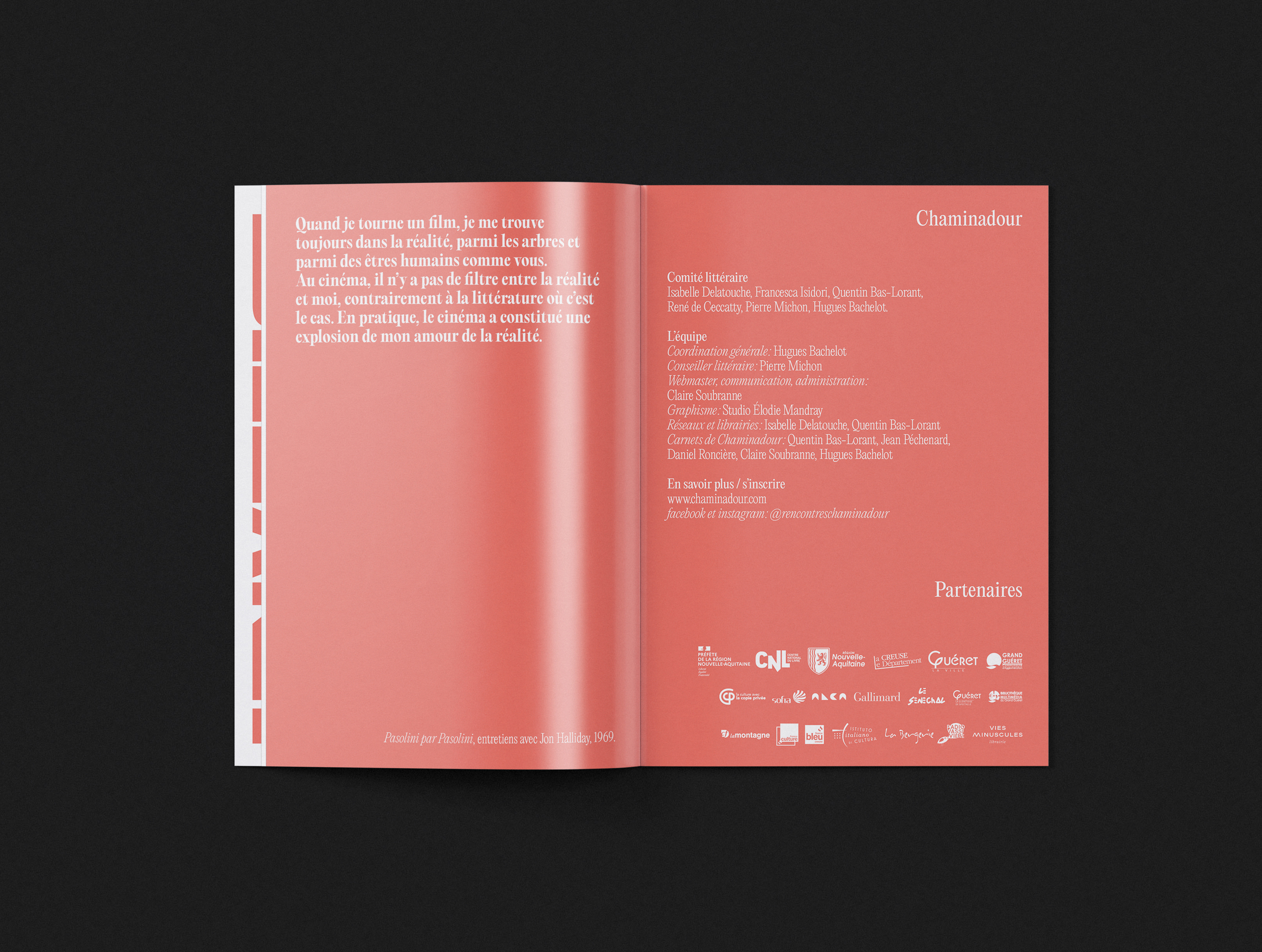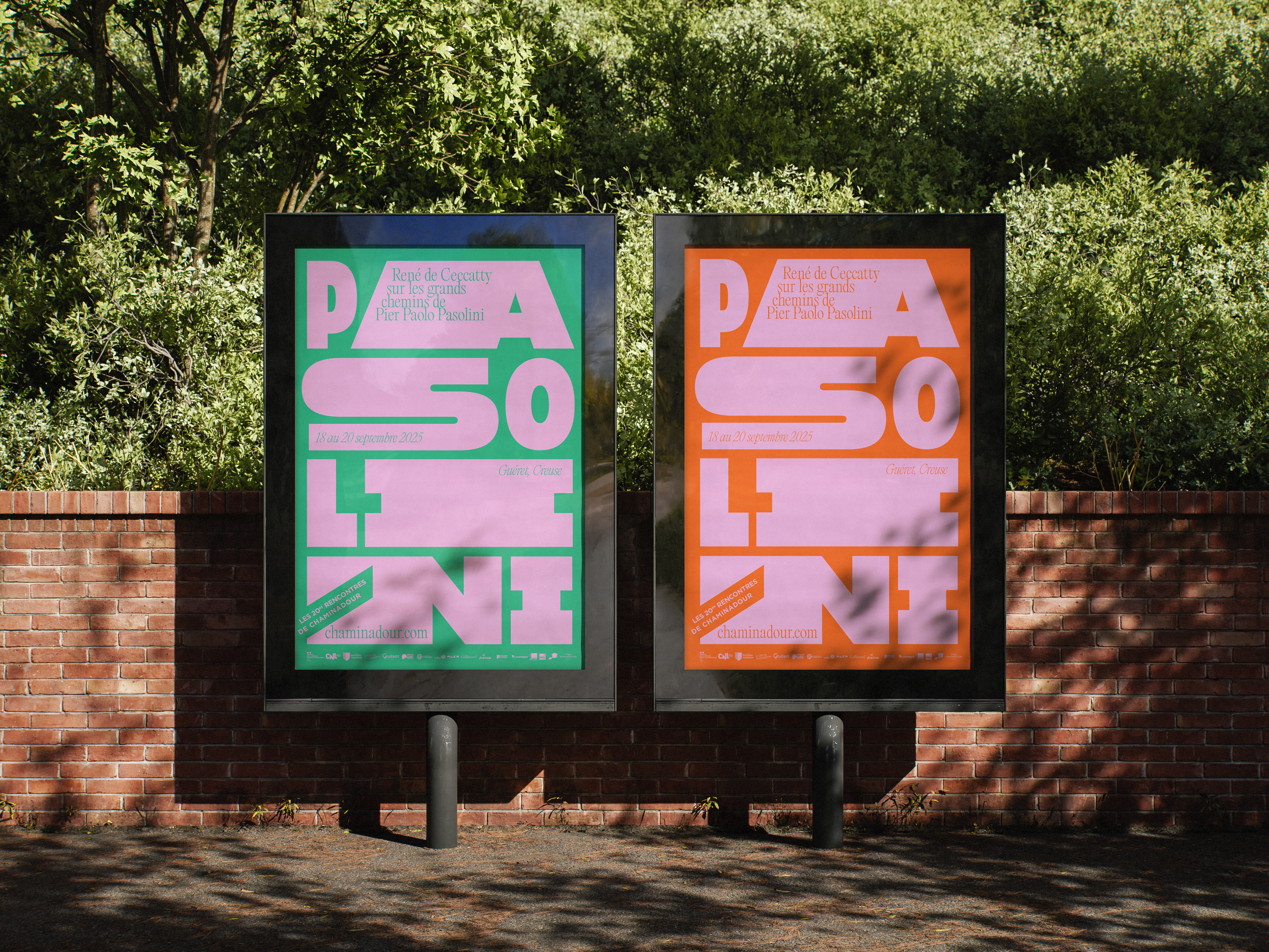 L’édition 2025 des Rencontres rend hommage à Pier Paolo Pasolini, qui fut à la fois écrivain, cinéaste, poète, peintre, journaliste. En investissant tous les champs de l’art et de la pensée avec la même force il a imprimé de façon unique sa vision du monde et des ses contemporains. J’ai donc dessiné une typographie bold qui exploite et emplit tout l’espace des supports de communication.